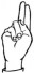 На ћирилици написано ПЕТАР ЋАЛОВИЋ састоји се из 12 слова [?]. Исписано ћириличном једноручном азбуком за глувонеме: